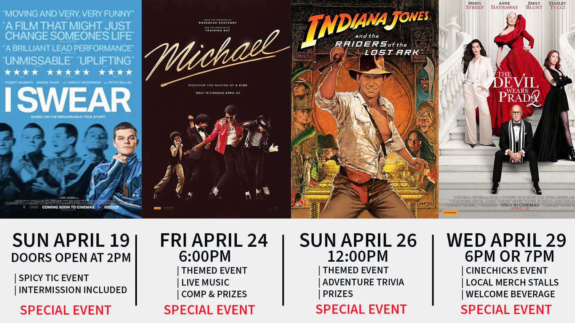 Join our special themed event on Sunday 26th at 12pm. Enjoy an adventure-filled experience with Indiana Jones trivia before the film, exciting prizes to be won, and hidden golden idols throughout the cinema for extra chances to win!!